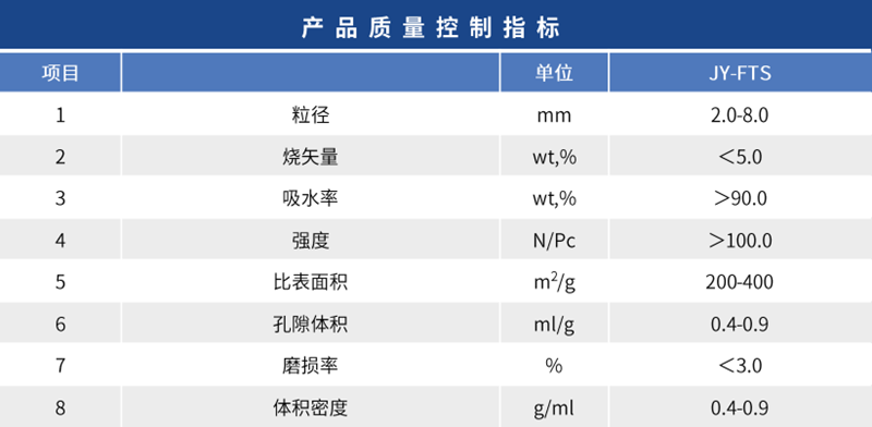 晶型:γ-Al2O3或θ-Al2O3 物理性質(zhì): 本品無毒、無味、無臭、不溶于水和乙醇。 產(chǎn)品介紹: JY-FTS型產(chǎn)品具有抗壓強(qiáng)度高、磨損小的特點(diǎn)??筛鶕?jù)需要調(diào)節(jié)大小、孔隙結(jié)構(gòu)、容重。廣泛應(yīng)用于吸附劑、加氫脫硫催化劑載體、加氫脫氮催化劑載體、CO耐硫移位催化劑載體等領(lǐng)域。