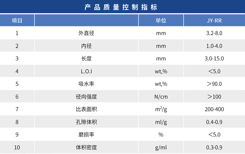 晶型:γ-Al2O3或θ-Al2O3 物理性質(zhì): 本品無毒、無味、無臭、不溶于水和乙醇。 產(chǎn)品介紹: JY-RR型產(chǎn)品作為反應(yīng)器中催化劑的覆蓋支撐劑和吸附材料。其主要作用是增加氣體或液體分配點,支撐和保護低強度活性催化劑。它具有純度高、化學(xué)性質(zhì)穩(wěn)定、耐熱性和機械抗震性較好的特點。廣泛應(yīng)用于石油化工、天然氣、煤化工等行業(yè)。